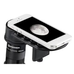 Met de BRESSER Deluxe Smartphone Adapter maak je moeiteloos foto’s door je telescoop of microscoop. Of je nu de kraters op de maan wilt vastleggen of de details van een insectenvleugel wilt fotograferen: je smartphone verandert in een supertelelens of supermacrolens.