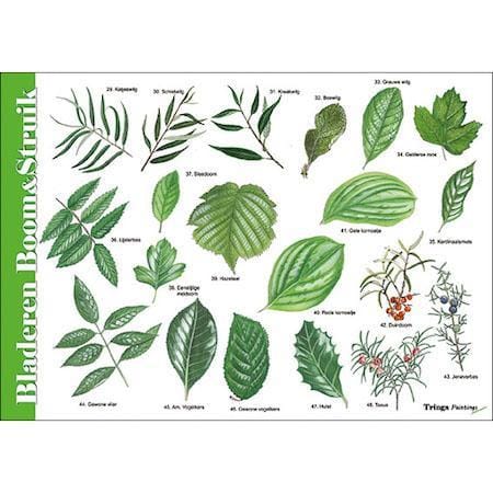 Met de ze hereknningskaart leer bomen en struiken herkennen aan hun bladeren. De meest voorkomende bladeren van bomen en struiken staan afgebeeld.
