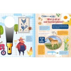 In dit bijzondere boek tover je met je zaklamp allerlei interessante dieren en andere dingen op de boerderij tevoorschijn.