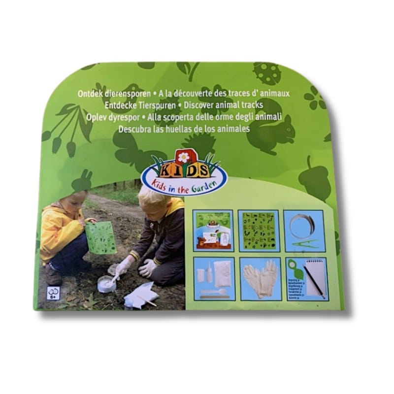 Met de Kids in the Garden Ontdekkoffer Diersporen wordt een wandeling in het bos of door de tuin ineens een spannend onderzoek. Je leert sporen herkennen, maakt een echte gipsafdruk en noteert je ontdekkingen als een echte spoorzoeker.
