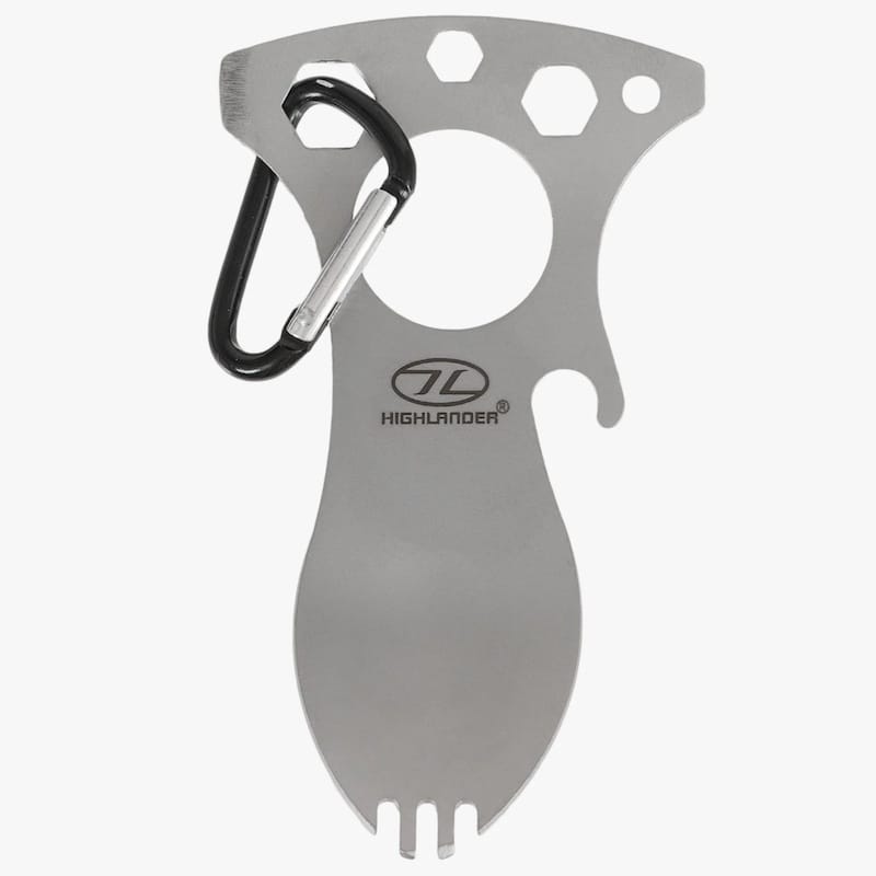 De Highlander Foon 5 in 1 tool (spork) combineert vijf essentiële functies in één compact ontwerp, waardoor het de perfecte metgezel is voor reizigers, kampeerders en avonturiers.