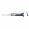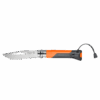 De Opinel No 8 Outdoor is zeer geschikt voor sportieve activiteiten op het water en in de bergen: bergbeklimmen, paragliding, wandelen, canyoning, speleo, zeilen, nautische activiteiten. Het 8,5 cm lange roestvrije lemmet is gemaakt van Sandvik 12C27 staal. Met een dikte van 2,5 mm en een gekarteld gedeelte van 3,5 cm snijdt de Opinel Outdoor moeiteloos door natuurlijke en synthetische touwen. De opening kan gebruikt worden als moersleutel (shackle key). Met het Virobloc systeem kan het outdoormes in geopende of gesloten positie worden vergrendeld. Het karakteristieke en ergonomische Opinel handvat van kunststof is bestand tegen extreme temperaturen van -40° C tot +80° C en de inwerking van (zout) water. Het fluitje dat is ingebouwd in het handvat brengt een geluid voort van 110 decibel, wat te horen is tot op een afstand van 300 meter. Met grip voor bevestiging aan een haak, tas of riem.