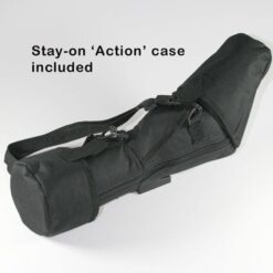 De geïntegreerde zonnekap houdt hinderlijk zonlicht uit je ogen. De scherpstelknop ligt boven op de scope, waardoor scherpstellen eenvoudig is. De spottingscope wordt geleverd met een handige ‘stay on’ tas. Deze tas kan om de body blijven als je wilt kijken. Je hoeft alleen de voor- en achterkant te openen en de beschermdoppen te verwijderen. De spottingscope is geheel waterdicht: 3 minuten op 1,5 meter.