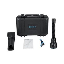 - Krachtige prestaties: aangedreven door een oplaadbare accu’s geïntegreerd in het handvat (twee 3500 mAh 18650 lithiumbatterijen), die een maximale output van 2.100 lumen en een bundelafstand van 1080 meter levert.